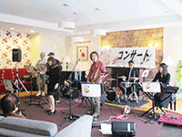 ご入居者にはソフトドリンクを提供し、素敵な音楽が響き渡り、大変優雅な時間を過ごしていただけたようです。 華やかな演奏に皆様、ご満足されていました。 |